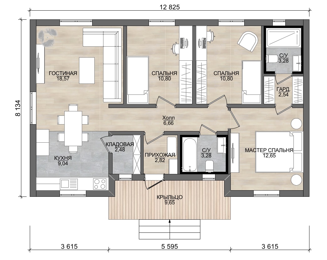 Не включено: | окна, двери, доставка домокомплекта, дополнительные затраты на фундамент, сопутствующие расходы на подрядные работы |