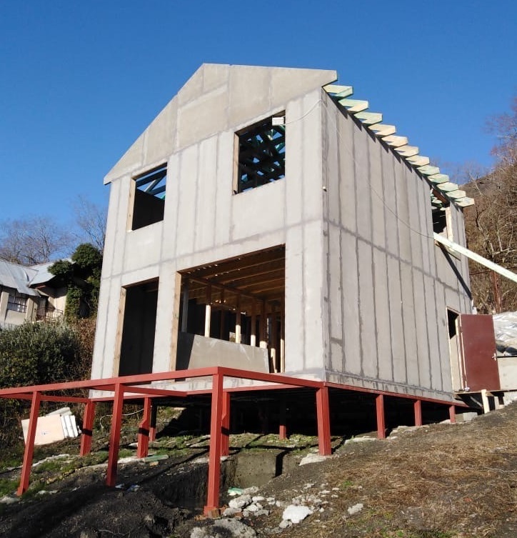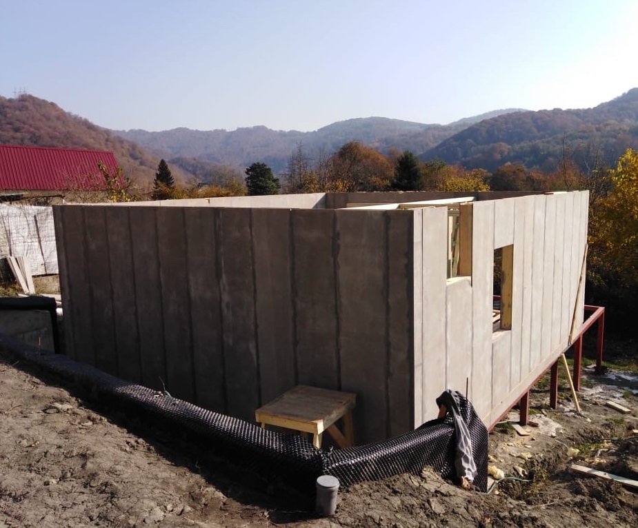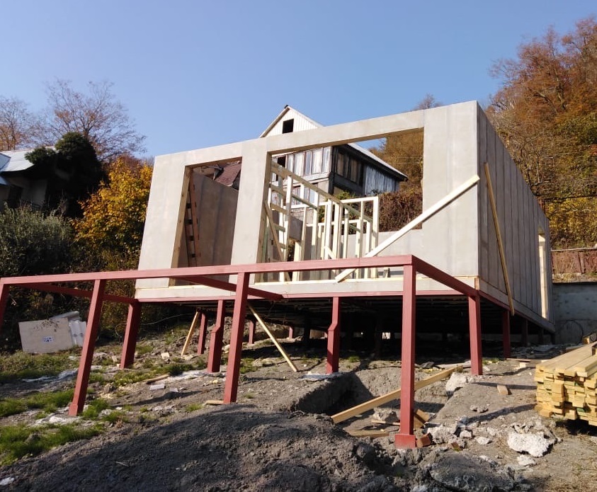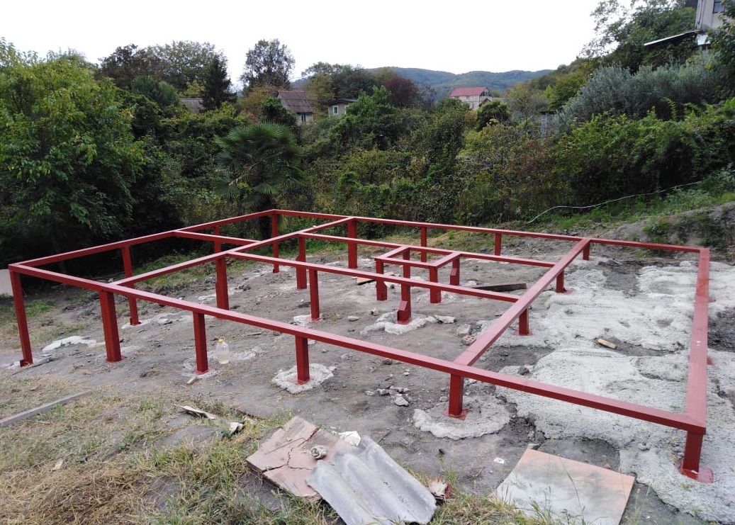Ростверк изготовлен из калиброванного клееного бруса и защищен снаружи цементно-стружечной плитой