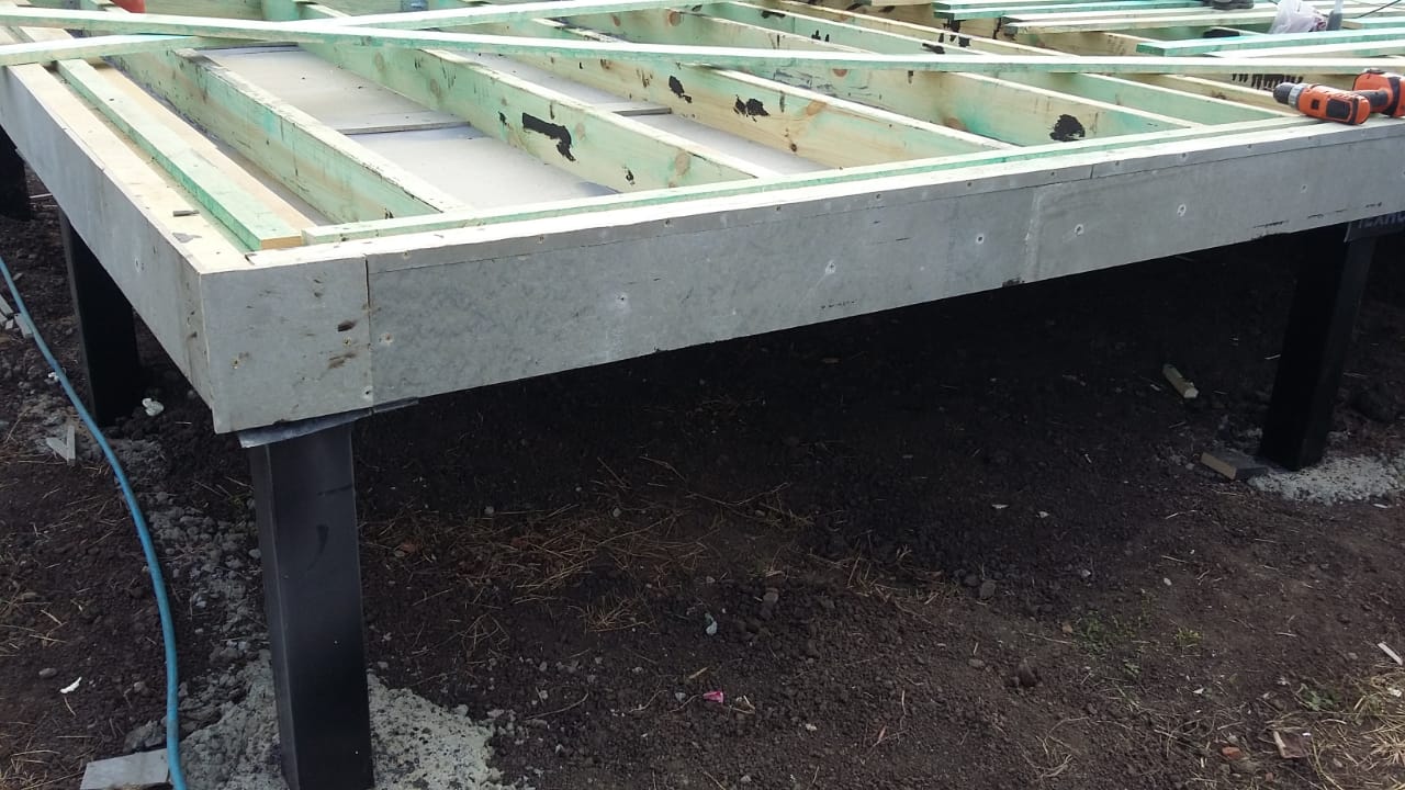 Ростверк изготовлен из калиброванного клееного бруса и защищен снаружи цементно-стружечной плитой