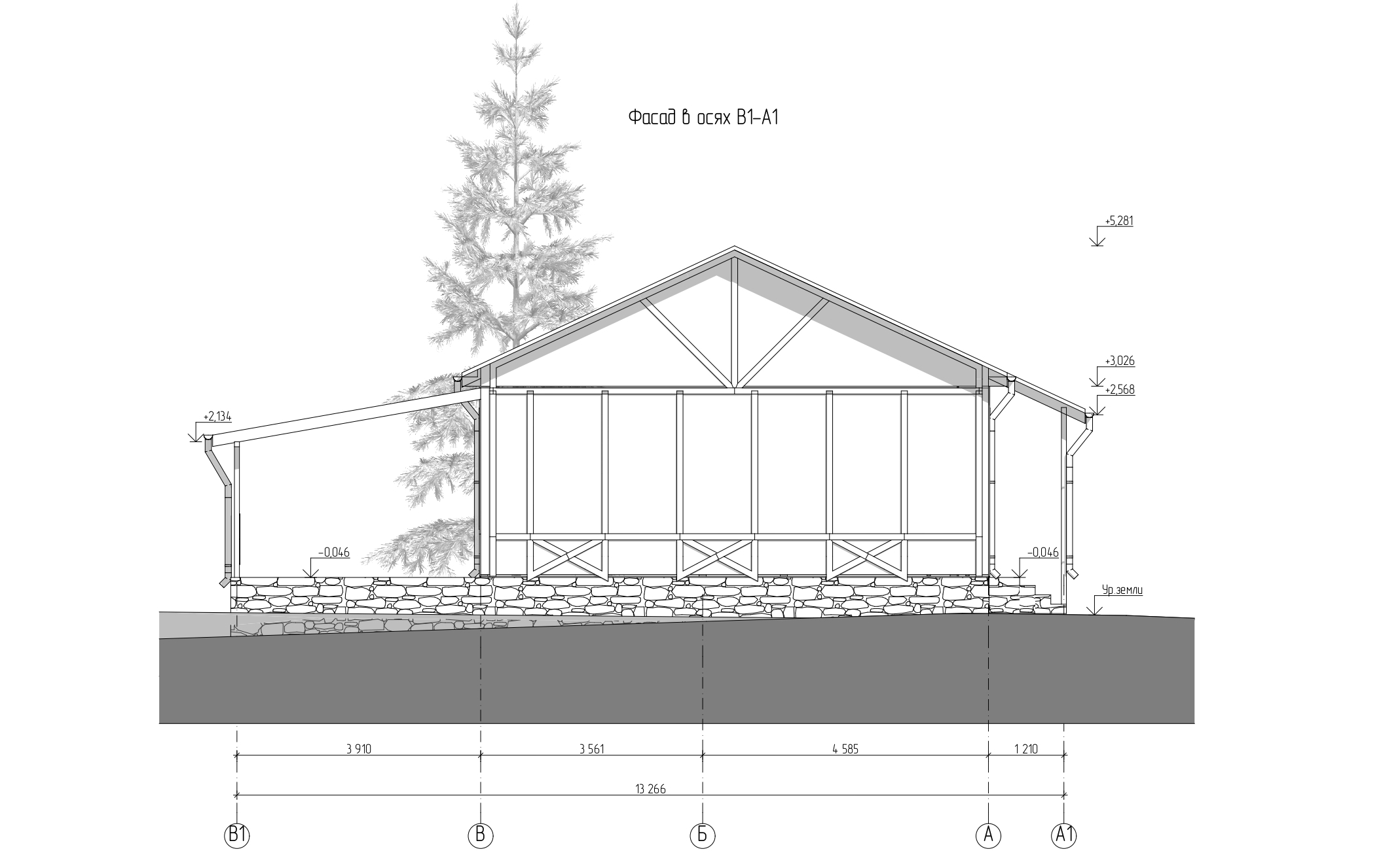 Ростверк изготовлен из калиброванного клееного бруса и защищен снаружи цементно-стружечной плитой