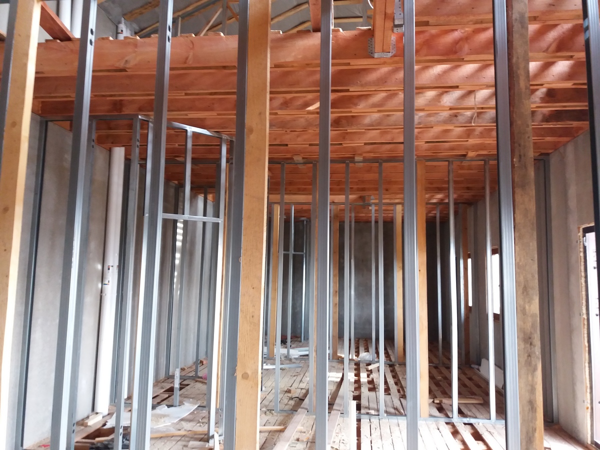 Устройство внутренних каркасных (не несущих) перегородок с монтажом листовых материалов (ГКЛ, ГСПВ, ЦСП) и устройством утеплителя.