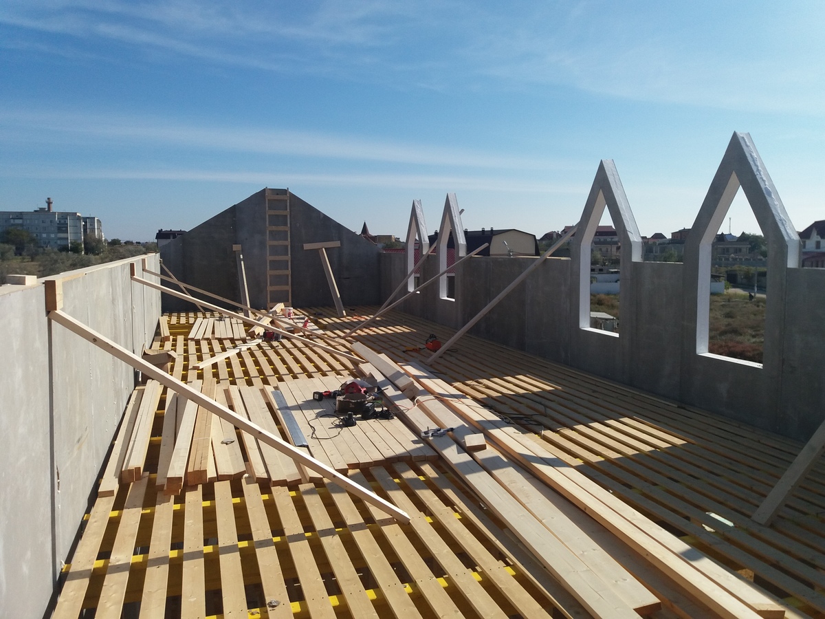Кровля может быть построена из бруса 150х50мм или SIP панелей. В качестве кровельного материала можно использовать: металлочерепицу, битумную и керамическую черепицу. Также производим кровельные шовные сэндвич-панели.