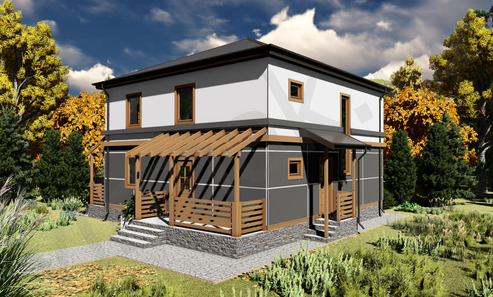 — это полностью готовый теплый контур дома. В данном случае дом полностью готов к монтажу внутренних инженерных сетей, звукоизоляции