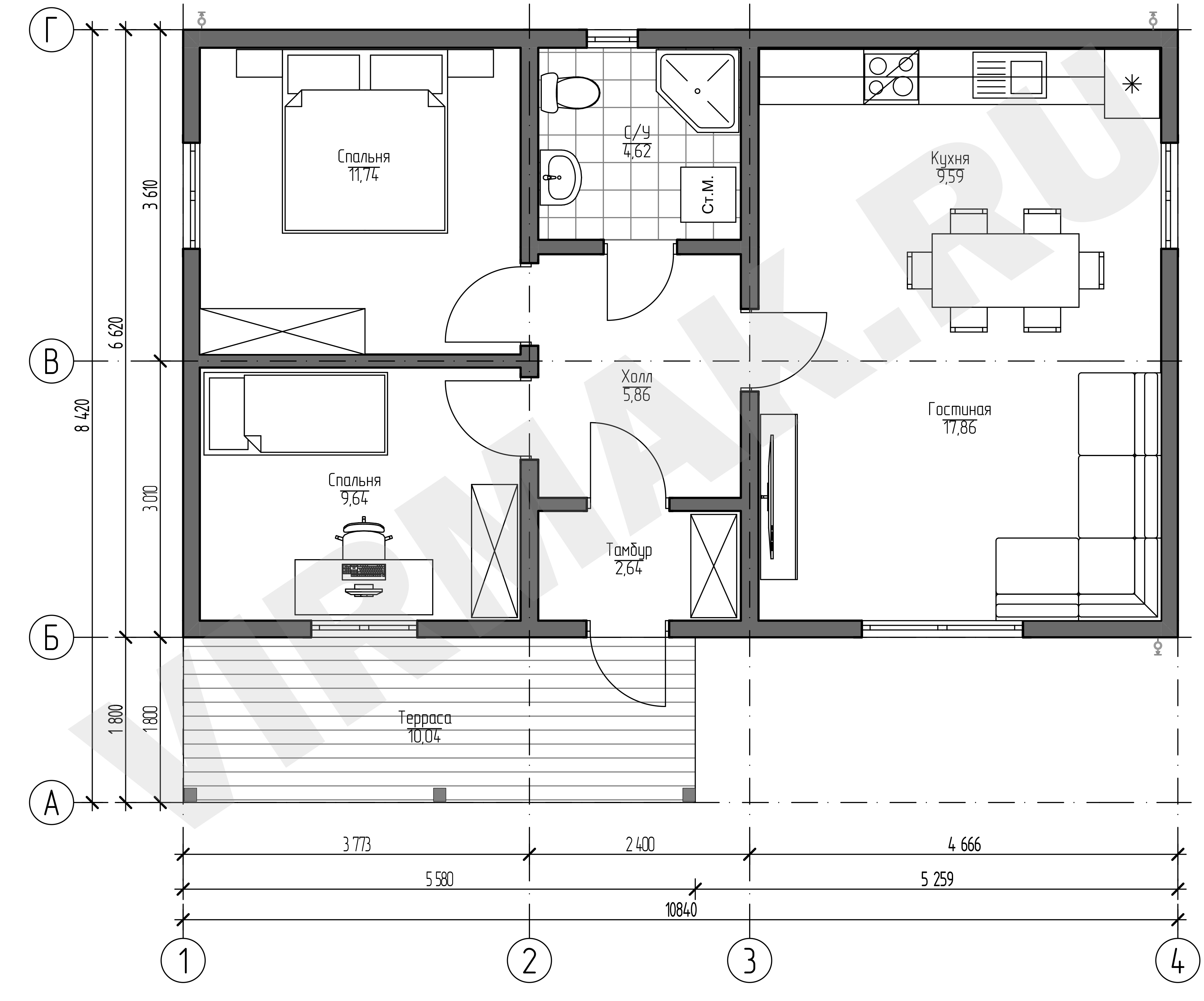 * В данную комплектацию не входит фундамент и крыша. Его тип и стоимость определяется индивидуально в зависимости от особенностей вашего участка.