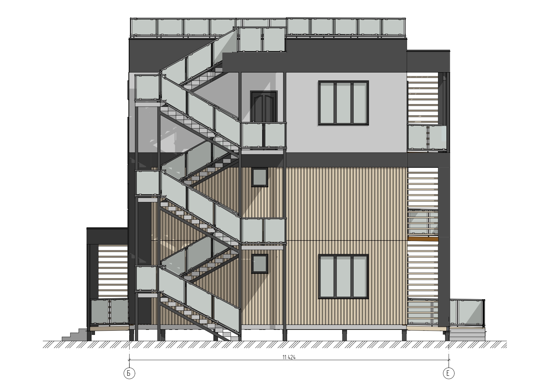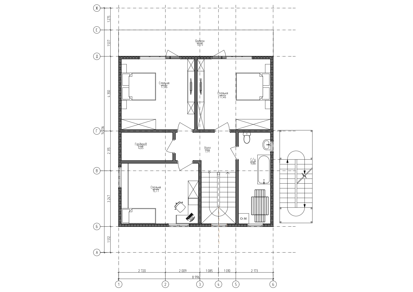 • Межэтажное перекрытие: Балки перекрытия БДК 250/300/350х65 мм, верхняя поперечная обрешетка 22х90 мм, сплошной настил листы ЦСП 12-16 мм. Звукоизоляция перекрытия. Пароизоляция перекрытия. Готовность пола и потолка под чистовую отделку.