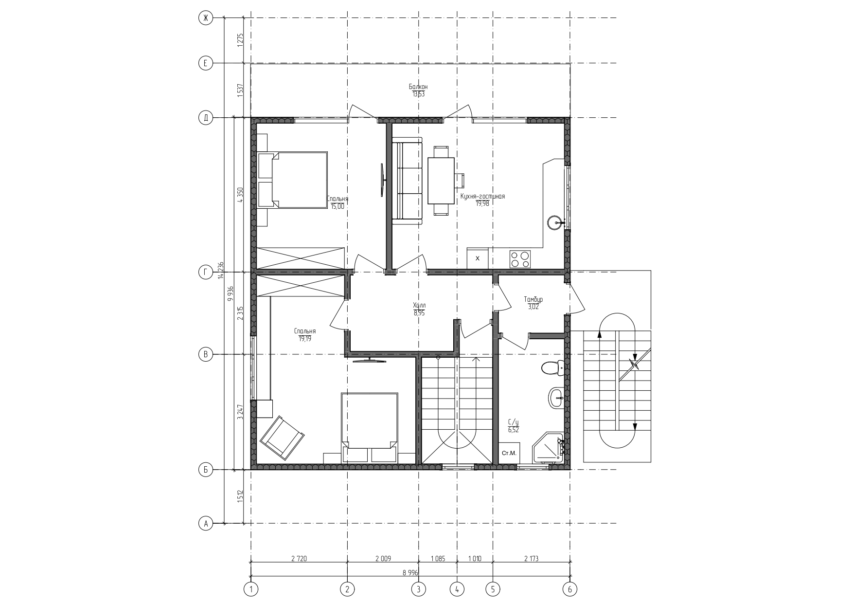 • Внутренние перегородки-каркас из сухой строганной доски: несущие 46х145 мм. Сборка в стоимость не входит