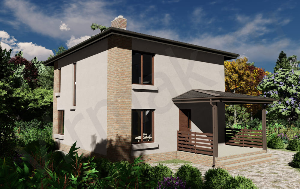 • Плоская или скатная утепленная кровля (пароизоляционная пленка, утеплитель вата на основе стекловолокна или базальта, гидро-ветрозащитная мембрана) с покрытием из металлочерепицы, полимерной мембраны или гибкой черепицы. (цена отличается от выбранного типа) (Ширина карнизного свеса от 30 см. Водосточная система в стоимость не входит