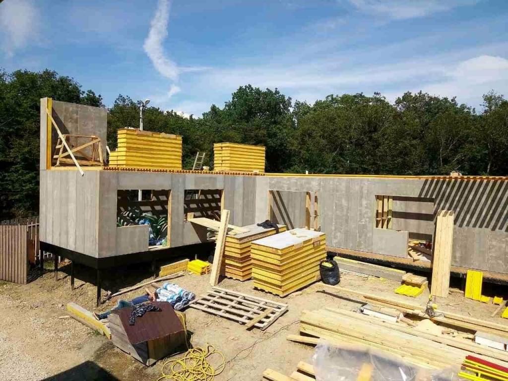 Первое — это фундамент СИП панельного строения. Мы применяем различные фундаменты в зависимости от геологии, геодезии участка, а также, от пожелания наших заказчиков. Так, в Московском регионе мы в основном применяем винтовые сваи, на юге России — буроналивные железобетонные столбы или ленточный мелко заглубленный железобетонный фундамент.
